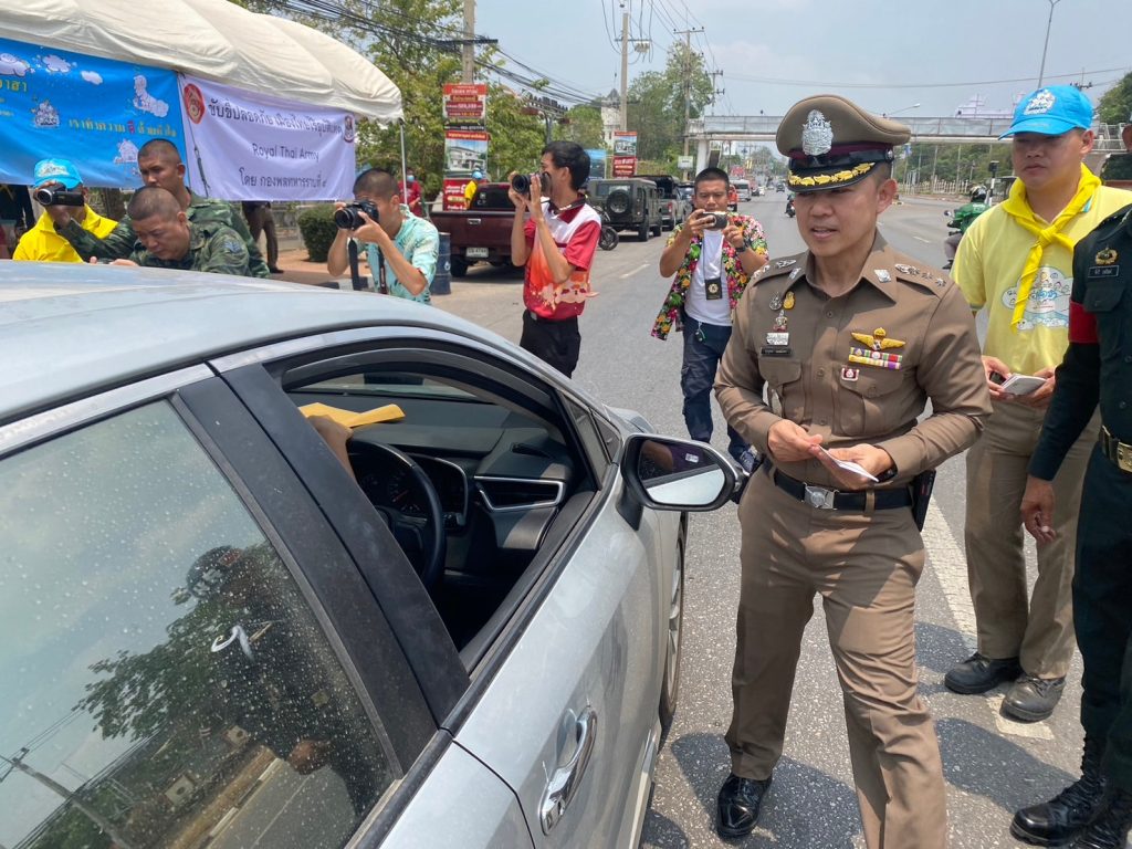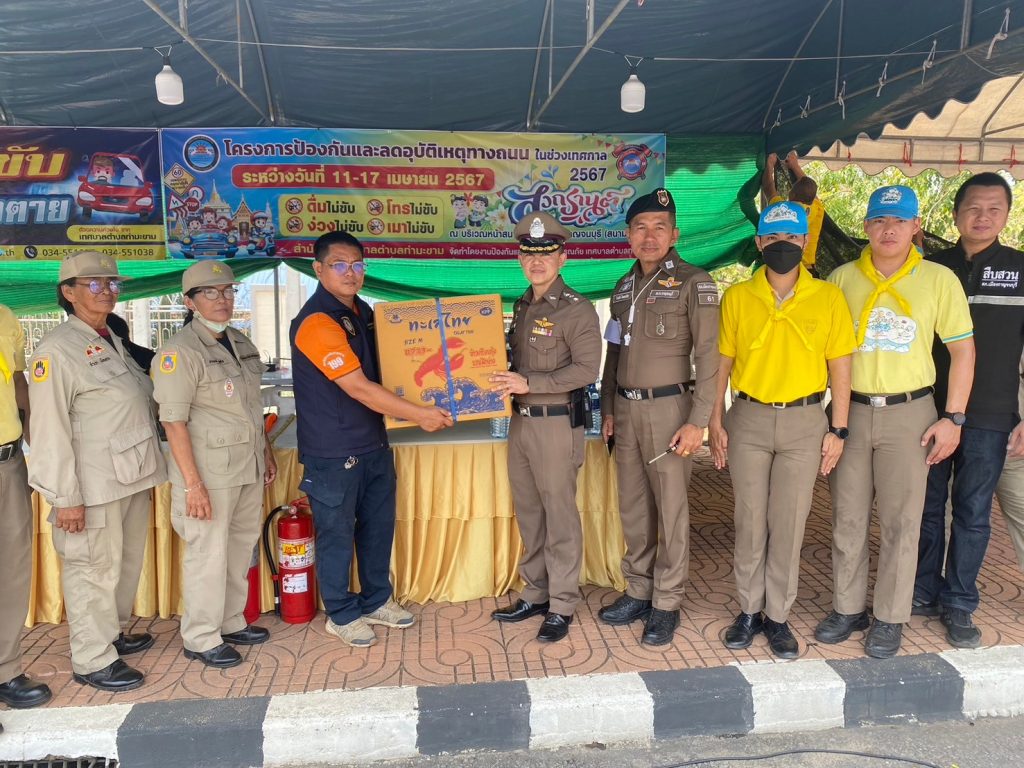 ร่วมกิจกรรมจิตอาสาประชาสัมพันธ์ขับขี่อย่างปลอดภัย ไร้อุบัติเหตุ โดยแจกแผ่นพับรณรงค์ขับขี่ปลอดภัย และแจกน้ำดื่ม ผ้าเย็น ให้ประชาชนที่เดินทางในช่วงเทศกาลสงกรานต์ ประจำปี 2567
