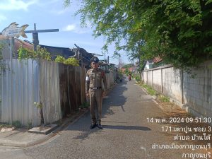 โดยอำนวยการของ พ.ต.อ.สุรยุทธ เมฆมังกร ผกก.สภ.เมืองกาญจนบุรี,พ.ต.ท.มงคล พรหมเมศร์ รอง ผกก จร สภ.เมืองกาญจนบุรี ได้สั่งการให้ พ.ต.ท.โชคชัย ไทยเจริญ สว.จร สภ.เมืองกาญจนบุรี กรณีมีการรัองเรียนลงโซเชียลทางช่องทางเราคนเมืองกาญจน์ เรื่องการจอดรถปิดซอย 8,9 วันนี้ เวลา 09.00-10.00 น.ได้ตรวจสอบการจอดรถในชุมชนเตาปูนซอย 3,4,8 และ 9 ซึ่งถนนในซอย 3,4 กว้างประมาณ 3-4 เมตร รถยนต์เดินรถสวนทางกันไม่ได้ ต้องลงไหล่ทางหรือพื้นที่ว่างถึงจะสวนทางกันได้ส่วนซอย 8,9 ถนนกว้างประมาณ 4-5 เมตร รถยนต์เดินรถสวนทางกันได้แต่ต้องใช้ความระม้ดระวัง เบื้องต้นตรวจสอบแล้วไม่พบการจอดรถในลักษณะกีดขวางการจราจร จึงได้สอบถามปัญหาดังกล่าวกัยนายปํญญา ศรีเผือก (082-242-1203) ผู้นำชุมชนเตาปูน ได้แจ้งให้ทราบว่าตนเองทราบเรื่องแล้วในซอยดังกล่าวเป็นชุมชนที่มีถนนและซอยค่อนข้างแคบรถยนต์ต้องใช้ความระมัดระวังในดารวิ่งสวนทางกัน ซึ่งชาวบ้านในชุมชนก็จะจอดรถที่บริเวณหน้าบ้านของตนเองแต่ก็ไม่กีดขวางจนทำให้รถไม่สามารถวิ่งผ่านได้ซึ่งถนนและในซอยส่วนใหญ่จะเป็นชาวบ้านในชุมชนใช้ในการสัญจรซึ่การ