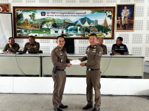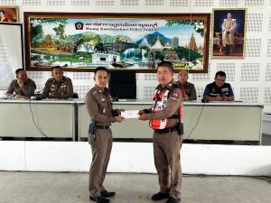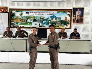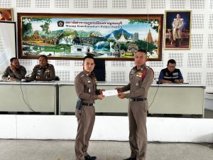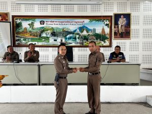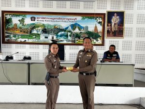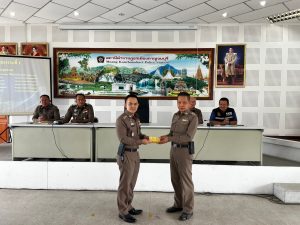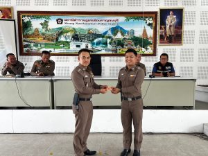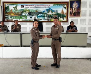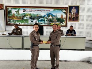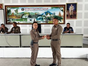 วันที่ 16 กรกฎาคม 2567 เวลา 13.00 น. พ.ต.อ.สุรยุทธ เมฆมังกร ผกก.สภ.เมืองกาญจนบุรี เรียกข้าราชการตำรวจ สภ.เมืองกาญจนบุรี เข้าร่วมประชุมประจำเดือน ครั้งที่ 4/2567 เพื่อชี้แจงมอบนโยบาย แจ้งข้อสั่งการของผู้บังคับบัญชา และแนวทางการปฏิบัติ พร้อมทั้งๆได้มอบเครืองหมายยศ ข้าราชการตำรวจชั้นประทวนที่ได้รับเลื่อยศสูงขึ้น จาก ส.ต.อ.เลื่อนยศเป็น จ.ส.ต.จำนวน 5 นาย และเข็มที่ระลึกตราสัญลักษณ์ในหลวงรัชกาลที่ 10 เนื่องในวาระเฉลิมพระชนมพรรษา 6 รอบ 72 พรรษา ในวันที่ 28 กรกฎาคม 2567 ให้แก้ข้าราชการตำรวจ สภ.เมืองกาญจนบุรีทุกนาย ณ ห้องประชุม ชั้น 4 สภ.เมืองกาญจนบุรี