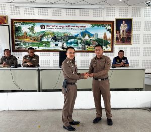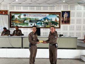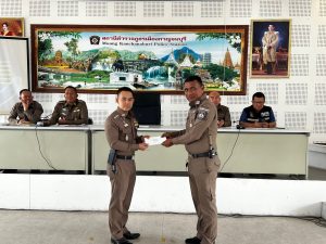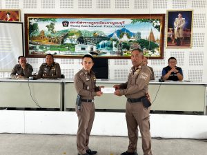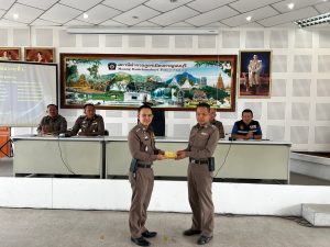 ประชุมประจำเดือน มอบเครื่องหมายยศข้าราชการตำรวจรับยศสูงขึ้น และมอบเข็มที่ระลึกตราสัญลักษณ์ฯ