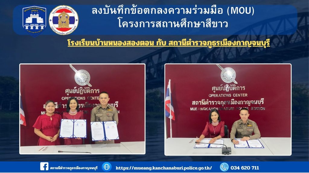 ร่วมลงบันทึกข้อตกลงความร่วมมือ (MOU) โครงการสถานศึกษาสีขาว ปลอดยาเสพติดและอบายมุขระหว่างสถานีตำรวจภูธรเมืองกาญจนบุรี