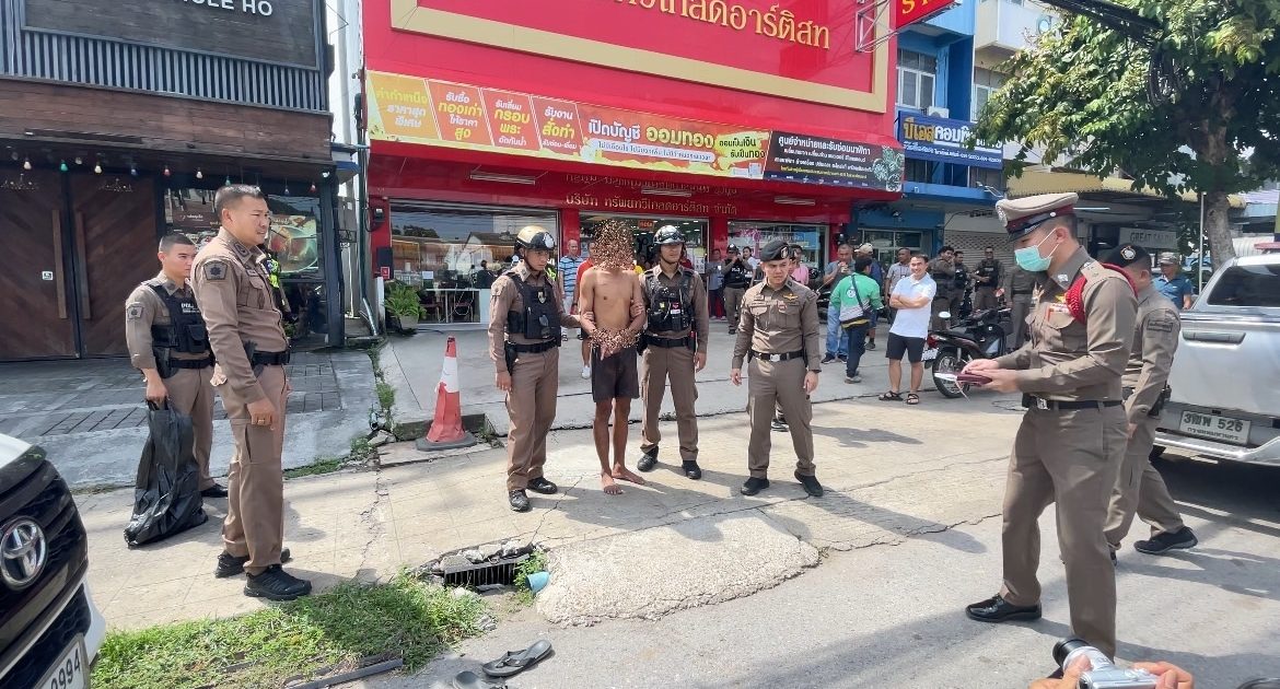 เวลาประมาณ 09.00 น. รับแจ้งจากศูนย์ 191 ได้รับจากมีเหตุวิ่งราวทรัพย์ ร้านทองทรัพย์ทวี ตลาดศูนย์การค้ากาญจนบุรี คนร้ายทำทีมาซื้อสร้อยคอทองคำ แล้วฉวยโอกาสเอาสร้อยคอทองคำจำนวน 2 เส้น เส้นละ 1 บาท วิ่งออกไปจากร้านทันที โดยมีเจ้าของร้านและพนักงานร้านวิ่งไล่ติดตาม เมื่อเจ้าหน้าที่ตำรวจ สภ.เมืองกาญจนบุรีได้รับแจ้งแล้ว พ.ต.อ.สุรยุทธ เมฆมังกร ผกก.สภ.เมืองกาญจนบุรี ได้สั่งการให้เจ้าหน้าที่ตำรวจสายตรวจ,จราจร พร้อมด้วยตำรวจสืบสวน ออกติดตามคนร้ายทันที ทราบว่าคนร้ายได้ทิ้งรถจักรยานยนต์ วิ่งหนีไปทางอนุบาลกาญจนบุรี และได้ถอดเสื้อ ถอดกางเกงที่สวมใส่ขณะก่อเหตุ ทราบว่าได้หลบหนีเข้าไปซ่อนตัวในบ้านหลังหนึ่งจึงได้เข้าไปทำการตรวจค้นพบตัว คนร้ายที่ก่อเหตุพร้อมด้วยสร้อยคอทองคำ จำนวน 2 เส้น นำหนัก 2 บาท ของกลางที่ถูกก่อเหตุ ทราบว่าเป็นชาวเมียนมา จึงได้ทำการจับกุมตัวชาวเมียนมา
