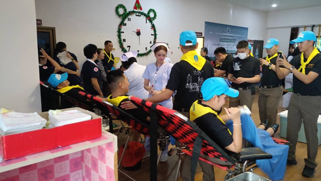 กิจกรรมจิตอาสาบริจาคโลหิต 29 ธันวาคม 2025 โดย Nuttar763 / งานอำนวยการ,ธันวาคม 2568 กิจกรรมจิตอาสาบริจาคโลหิต วันที่ 12 ธันวาคม 2568 เวลา 08.00 น. ข้าราชตำรวจจิตอาสา พร้อม นสต.ฝึกงาน สภ.เมืองกาญจนบุรี 15 นาย ร่วมโครงการจิตอาสาบริจาคโลหิตเพื่อถวายเป็นพระราชกุศลแด่สมเด็จพระนางเจ้าสิริกิติ์ พระบรมราชินีนาถ พระราชชนนีพันปีหลวง เพื่อร่วมเป็นส่วนหนึ่งของ “สายธารโลหิตแห่งภักดี”ณ สหกรณ์ออมทรัพย์ตำรวจภูธรจังหวัดกาญจนบุรี อ.เมือง จว.กาญจนบุรี