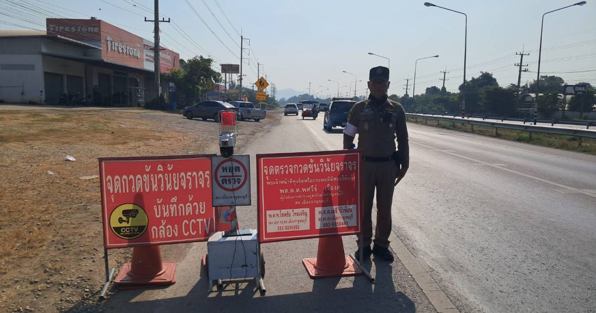 งานจราจรสภ.เมืองกาญจนบุรี ตั้งด่านกวดขันนวินัยจราจรช่วงเทศกาลปีใหม่ 2569 2 มกราคม 2026 โดย Nuttar763 / งานจราจร,งานจราจร,มกราคม 2569