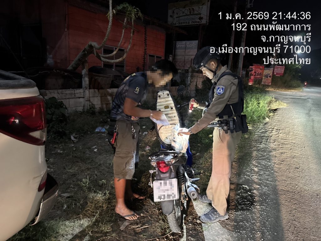 งานป้องกันปราบปรามตั้งจุดสกัดชั่วคราวป้องกันเหตุในช่วงเทศกาลปีใหม่ ปี2569 2 มกราคม 2026 โดย Nuttar763 / ผลปฏิบัติงานป้องกันปราบปราม,ผลปฏิบัติงานป้องกันปราบปราม,มกราคม 2569 วันที่ 1 มกราคม 2569 เวลา 21.00 – 22.00 นพ.ต.ท.เวชยัณ ปิยภิรมย์สวป.สภ.เมืองกาญจนบุรีพร้อมกำลังสายตรวจจักรยานยนต์ชุดที่ 2จุดสลัด(ชั่วคราว) แยกรุ่งทิพย์ผลการปฏิบัติ-ตรวจค้นจยย 28 คัน-ตรวจค้นรถยนต์ 30 คัน-ตรวจค้นบุคคล 36 รายไม่พบสิ่งของผิดกฎหมาย