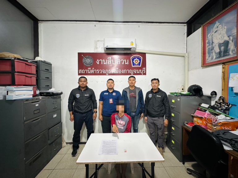 โดยนำตัวส่ง ร้อยเวร (สอบสวน) สภ.เมืองกาญจนบุรี เพื่อดำเนินคดีตามกฎหมาย