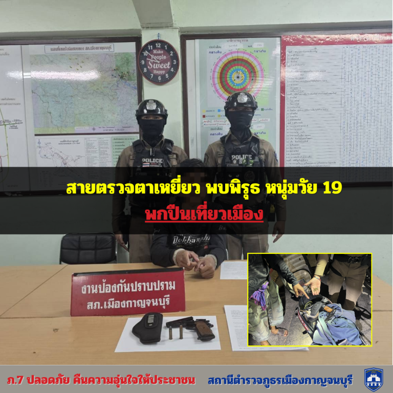 สายตรวจชุดพิเศษจับกุมชายหนุ่มวัย 19 ปี พกอาวุธปืนพกสั้นไทยประดิษฐ์