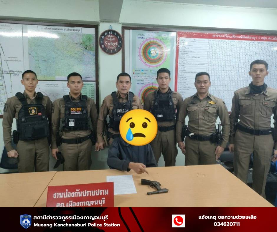 25กุมภาพันธ์ 2568 เวลา 06.44 น.ว่าที่ ร.ต.อ.ทรงเผ่า แก้ววรรณา รอง สวป. สภ.เมืองกาญจนบุรี พร้อมกำลังส