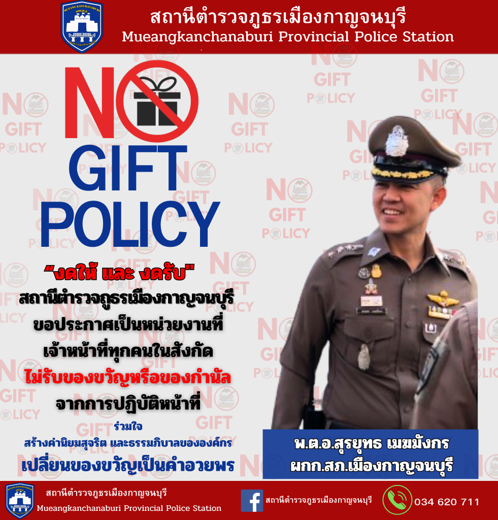 เจตนารมณ์ที่จะไม่รับของขวัญและของกำนัลทุกชนิดจากการปฏิบัติหน้าที่ (No Gift Policy) ฉบับภาษาไทย