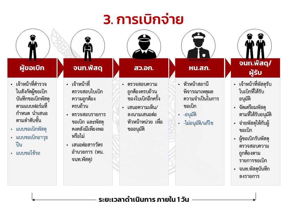 ตรวจสอบและตรวจนับอาวุธยุทธภัณฑ์ของสถานีตำรวจเพื่อให้มีความพร้อมต่อการใช้งานในภารกิจประจำวัน