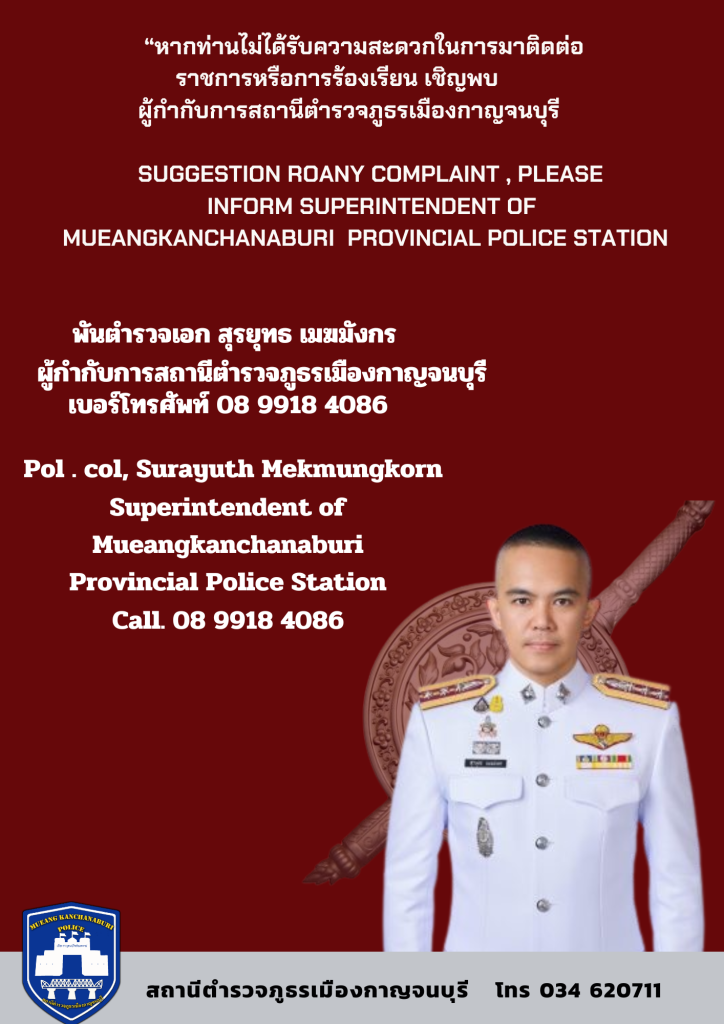 ช่องทางแจ้งเรื่องร้องเรียนการทุจริตของสถานีตำรวจภูธรเมืองกาญจนบุรี