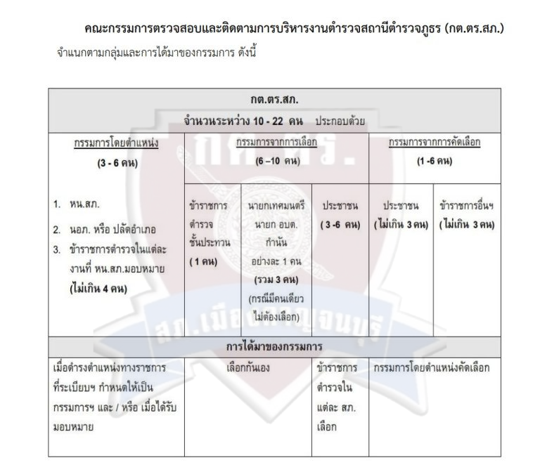 (เอกสารอ้างอิง) วิธีการสรรหาคณะกรรมการตรวจสอบและติดตามการบริหารงานตำรวจ สถานีตำรวจภูธร (กต.ตร.สภ.)