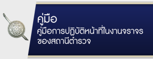 คู่มือหรือมาตรฐานการปฏิบัติงาน ตามภารกิจของแต่ละงาน ได้แก่ งานอำนวยการ งานป้องกันปราบปราม งานจราจร งานสืบสวน และงานสอบสวน และข้อมูลอื่นๆ ที่เกี่ยวข้อง ที่ใช้สำหรับการปฏิบัติหน้าที่