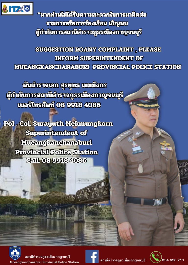 ช่องทางแจ้งเรื่องร้องเรียนการทุจริตของสถานีตำรวจภูธรเมืองกาญจนบุรี