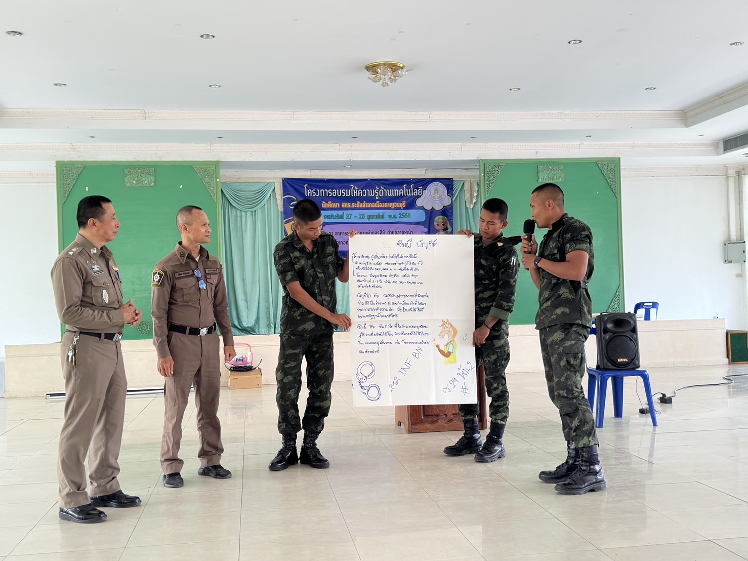 พ.ต.ท.เพชรชยุทธ์ แสงแก้ว อบรมให้ความรู้ ด้านเทคโนโลยี นักศึกษา สกร.ระดับอำเภอเมืองกาญจนบุรี เพื่อขยายโอกาสทางการศึกษา ให้แก่ทหารกองเกิน