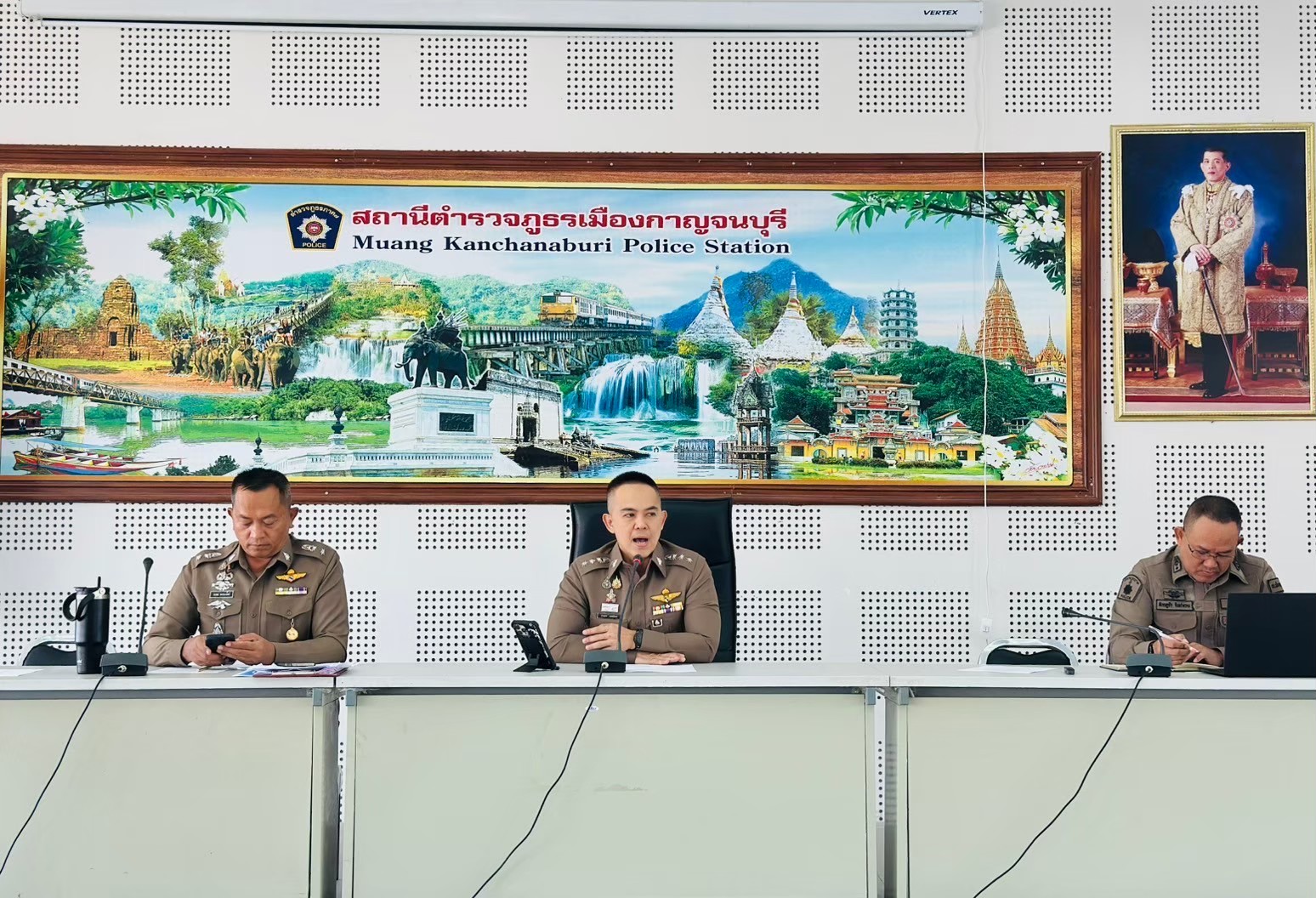 10 มีนาคม 2568 พ.ต.ท.วศิน พลายศิริ รอง ผกก.สส.สภ.เมือกาญจนบุรี , พ.ต.ท.มารุต ฉัตรทัณฑ์ สว.สส.สภ.เมือ