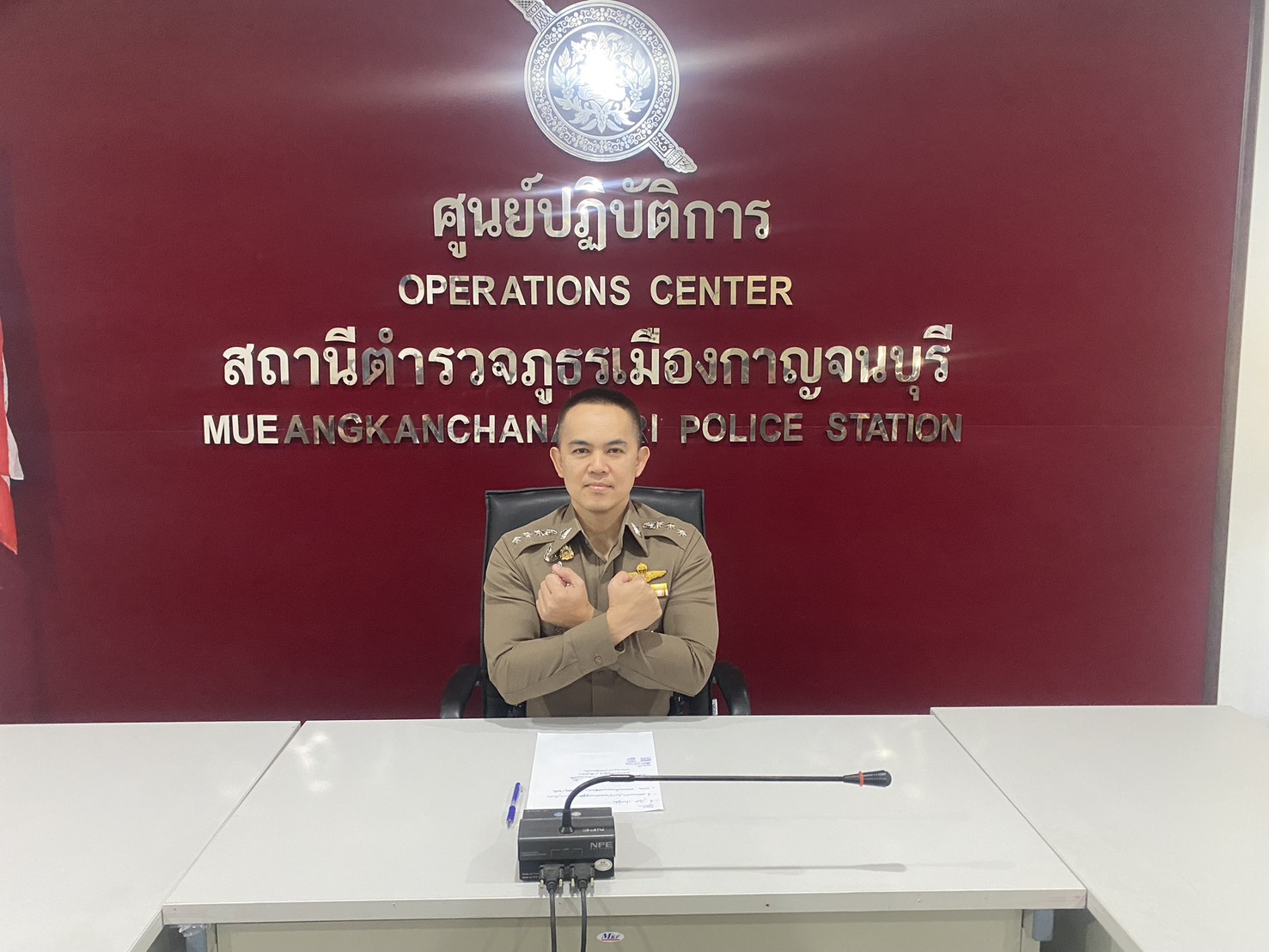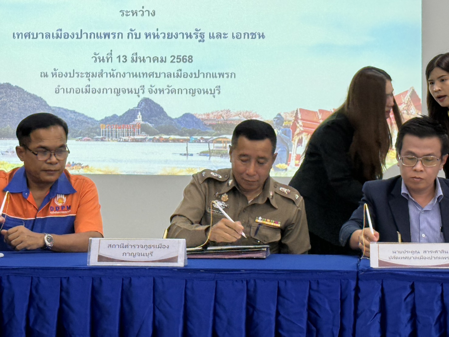 พ.ต.ท.เพชรชยุทธ์ แสงแก้ว สว.ธร.สภ.เมืองกาญจนบุรี ร่วมพิธีลงนามบักทึกข้อตกลง (MOU) ว่าด้วยการบริหารจัดการความรู้ฯ
